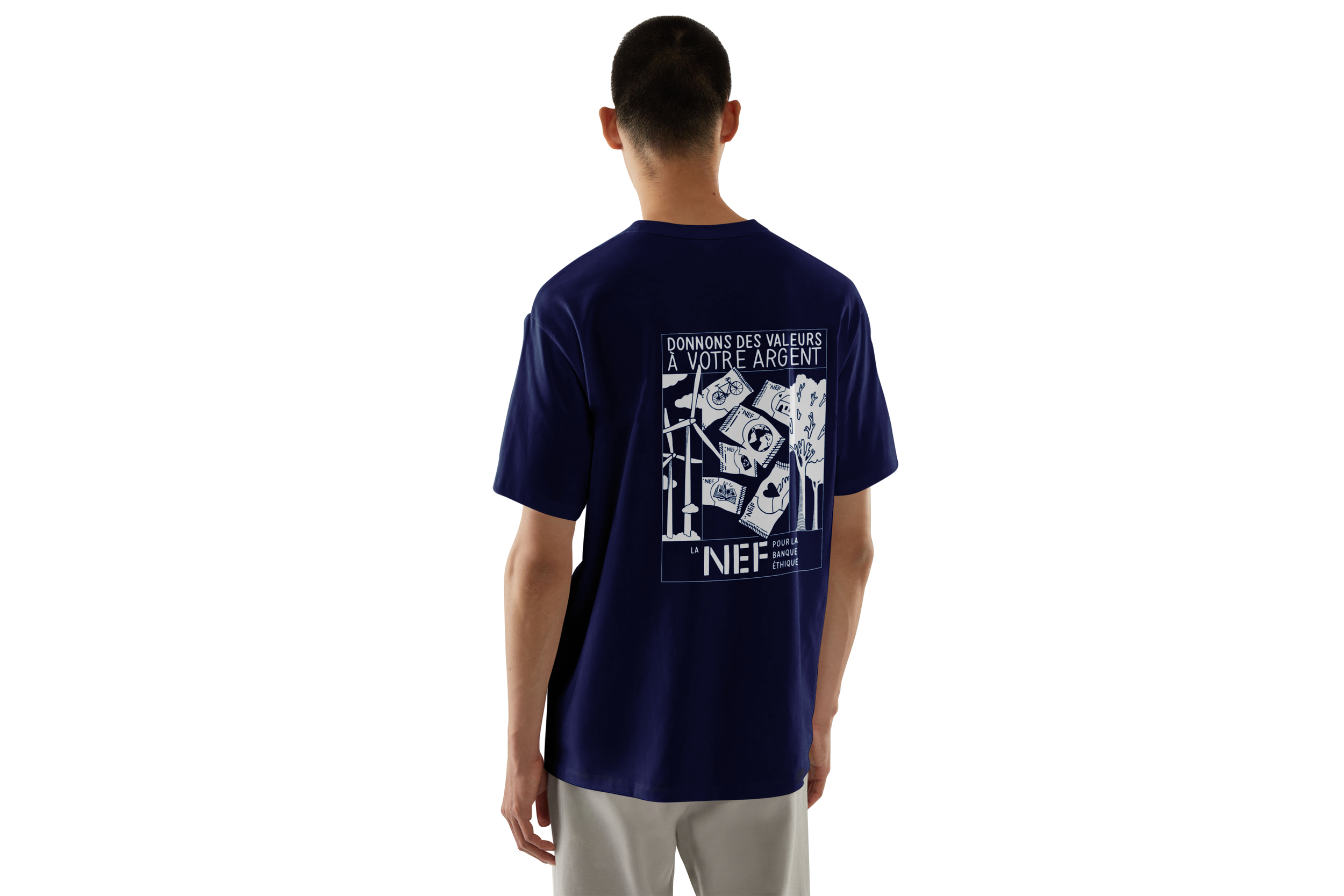 - Un t-shirt corporate illustré, imaginé comme un clin d’œil graphique aux valeurs de l’institution.